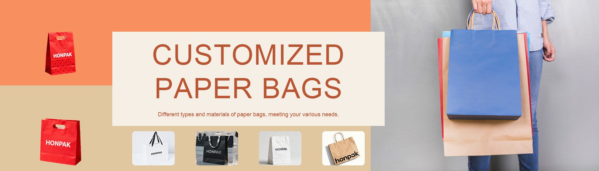Honpak Custom Merk Winkel Bedrukte Papieren Zakken Met Uw Eigen Logo Kartonnen Boodschappentas Cadeau Zakjes Voor Kleine Bedrijven